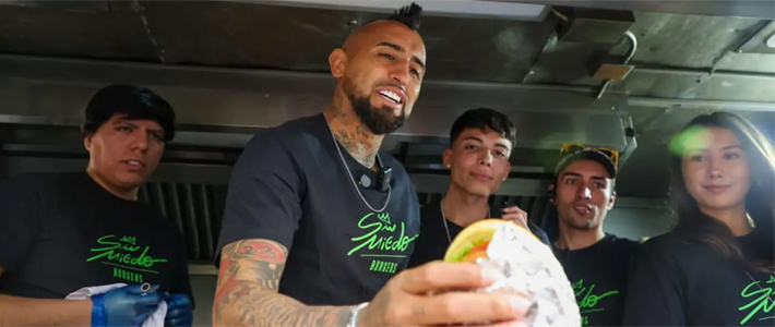 Segundo, se metió en el rubro gastronómico y abrió una hamburguesería. "Sin miedo Burguers" se llama el local del chileno, que anunció su emprendimiento el pasado 29 de abril. Funciona solo con delivery y están ubicadas en el centro de Santiago. El mismo Vidal repartió hamburguesas en la inauguración.