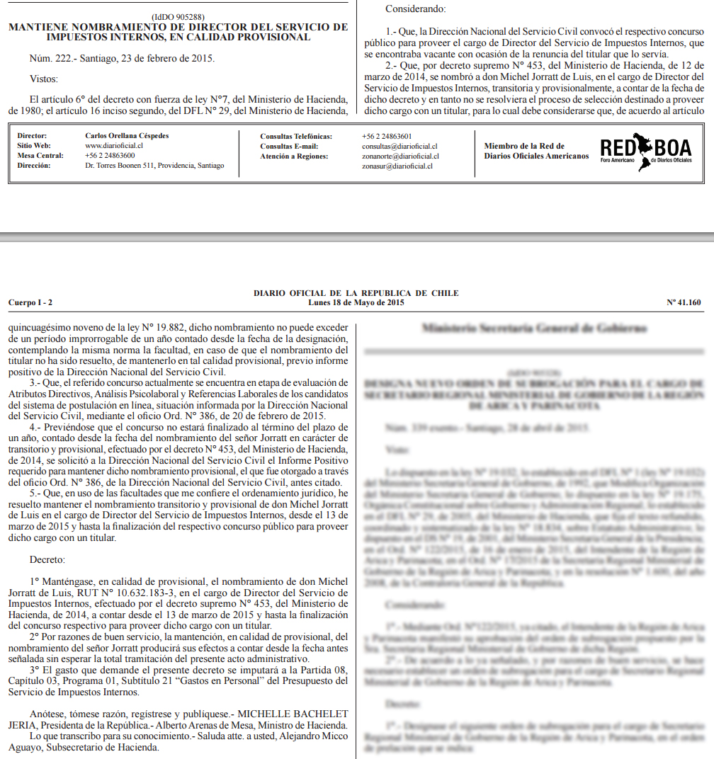 El Diario Oficial publicó que se mantiene en "calidad de provisional" el nombramiento de Michael Jorratt en el cargo de Director del Servicio de Impuestos Internos a contar del 13 de marzo, un día después que cumpliera un año de su llegada al organismo fiscalizador de manera "transitoria y povisionalmente".