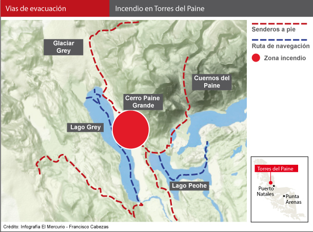 SANTIAGO.- Las autoridades informaron que hasta este mediodía las llamas han afectado 8.500 hectáreas del Parque Nacional Torres del Paine, lo que equivale a 85 km ².