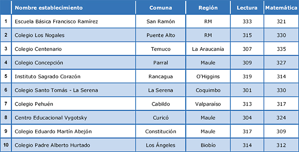 El mejor puntaje en cuarto y octavo básico lo consiguió la Escuela Básica Fracisco Ramírez de San ramón.