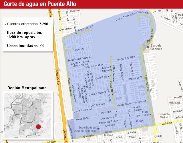 MAPA: Conoce el sector de Puente Alto donde está suspendido el servicio de agua potable