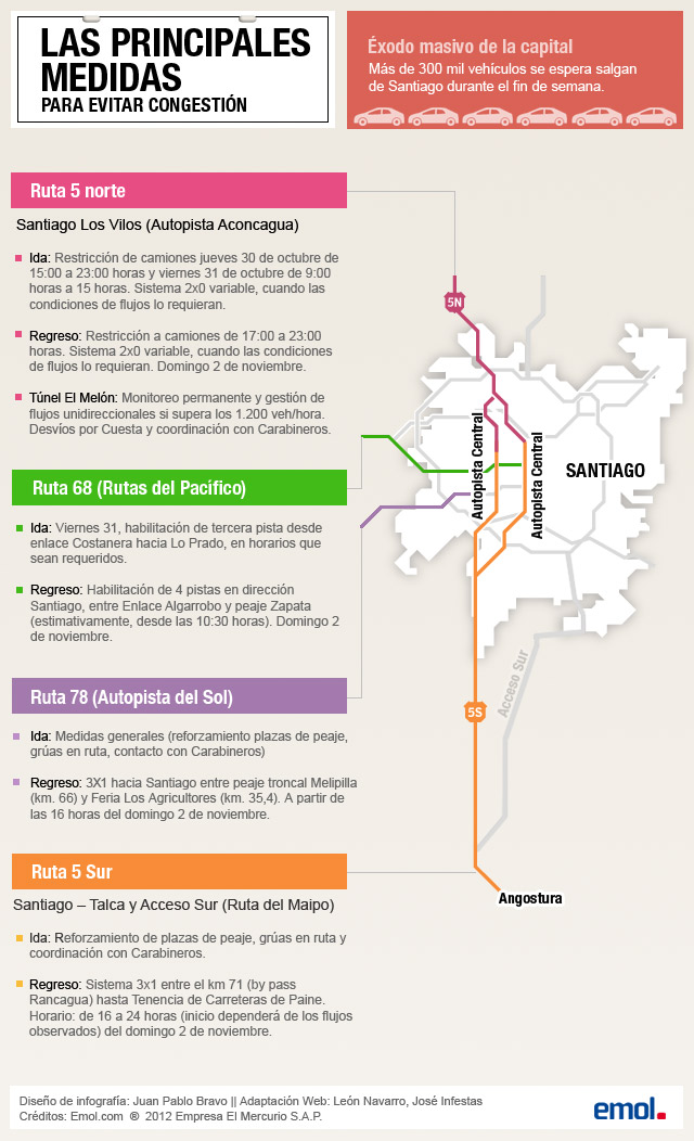 Infografía: Las medidas para evitar congestión este fin de semana en los accesos a Santiago