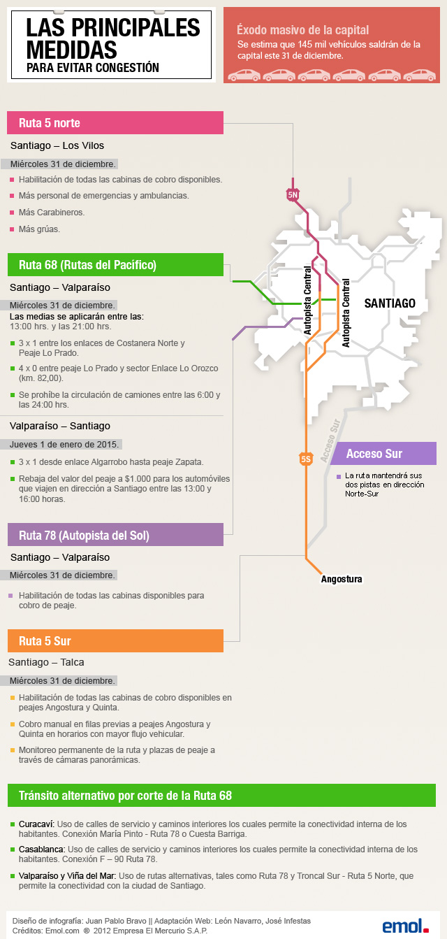 Infografía: Las medidas para evitar congestión en las salidas de Santiago este 31 de diciembre