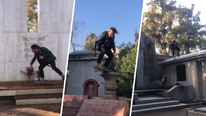 En los videos, grabados por ellos mismos y compartidos en sus propias redes sociales, se ven a hombres mayores de edad patinando sobre mausoleos del cementerio, entre ellos, el del expresidente Salvador Allende.