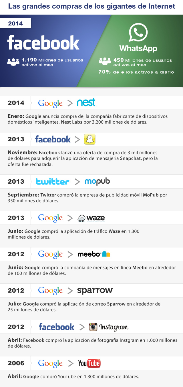 El sorpresivo anuncio hecho este miércoles por Facebook y WhatsApp ha sido la más cuantiosa de este tipo registrada dentro del movido panorama que muestra el sector en los últimos años.
