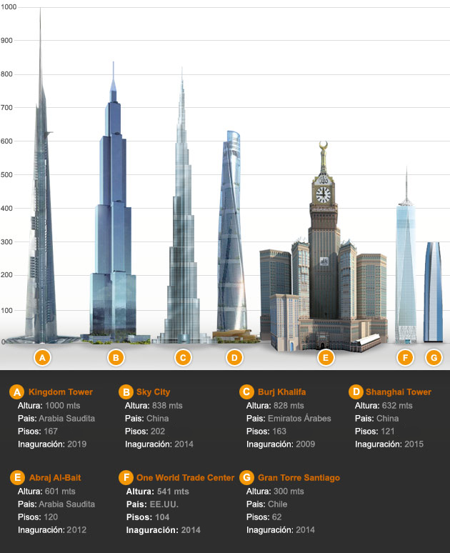 Además, se tomará el título del edificio más alto del mundo (y por mucho). Actualmente la marca es del Burj Khalifa, instalado en Dubai, con una altura de 828 metros y 163 pisos. Pero lo perderá este año, cuando se inaugure la "Sky City Tower", en Changsha, China.