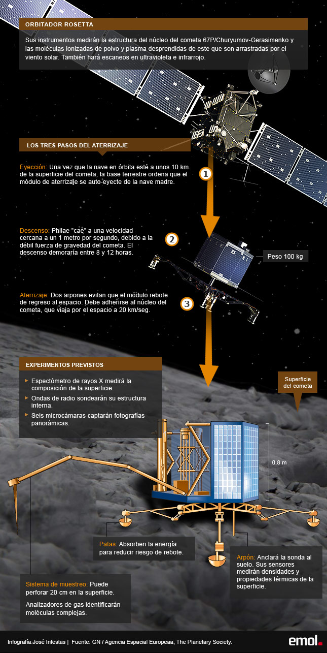 Infografía: Así es la misión de Rosetta para explorar por primera vez la superficie de un cometa