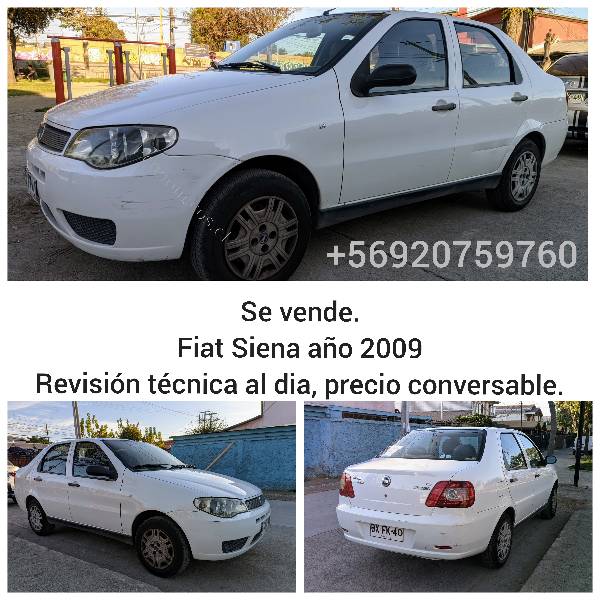Fiat Siena 2009, mecánico. Se vende o permuta por vehículo familiar ojala 3 filas asiento. Motor 1,4 cc, económico. Alzavidrios delanteros. Amplia maleta. Papeles al día, revisión técnica, soap y permiso circulación. Llegar y transferir Autofact. Sin multas tag ni partes. Auto de uso familiar. Tapiz buen estado. Afinamiento y cambio aceite reciente. ??9??2??0??7??5??9??7??6??0??